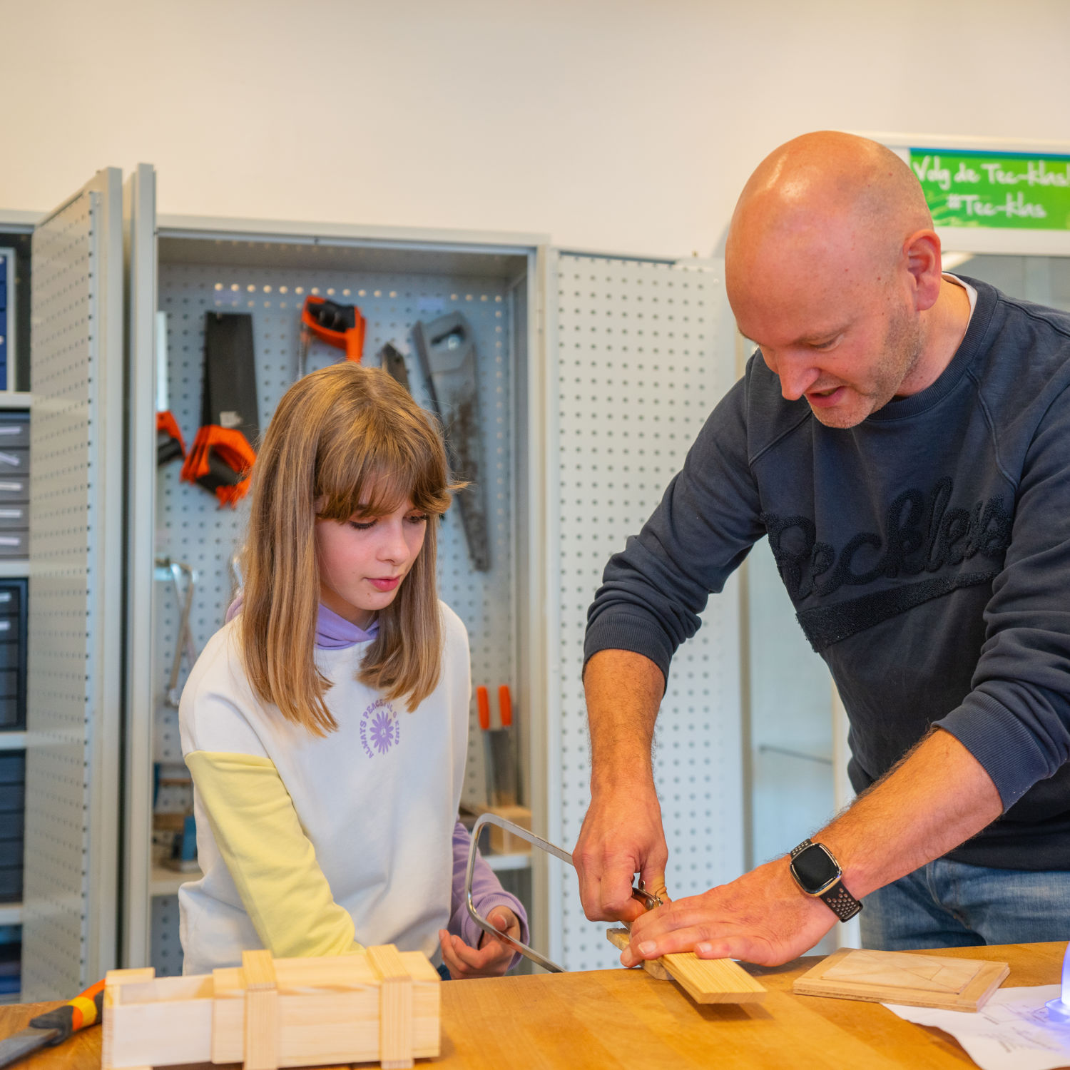 In de Tec-klas maak je verschillende werkstukken, van windgong tot robot. Je leert hoe apparaten werken en werkt met verschillende materialen. Daarnaast leer je