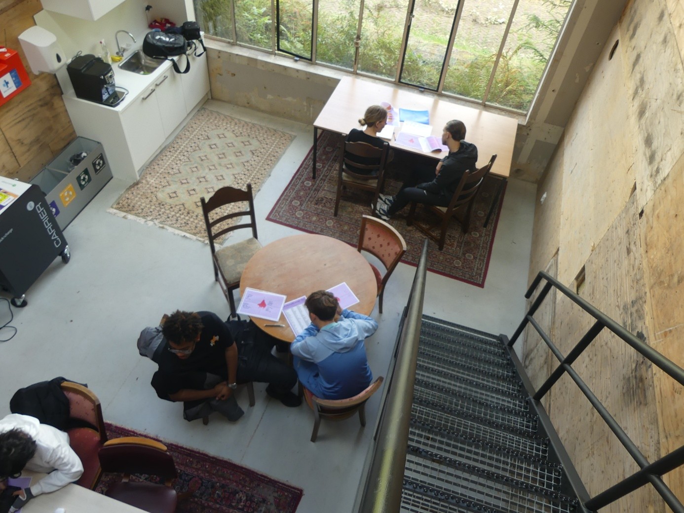 ^ Leerlingen aan de slag met een beroepshoudingsspel voordat de stage van start gaat